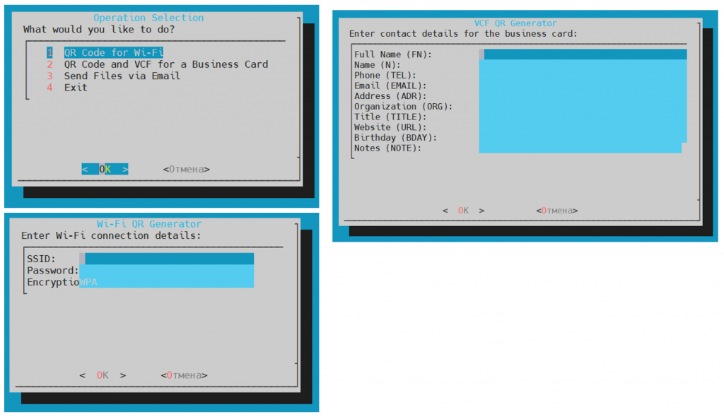 dialog --msgbox "VCF and QR code saved as contact.vcf and vcf_qr.png" 6 50
