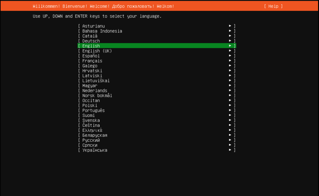 I will describe in full one of the installation options that I use. The first thing we will see is a window with a suggestion for installing the Ubuntu Server.