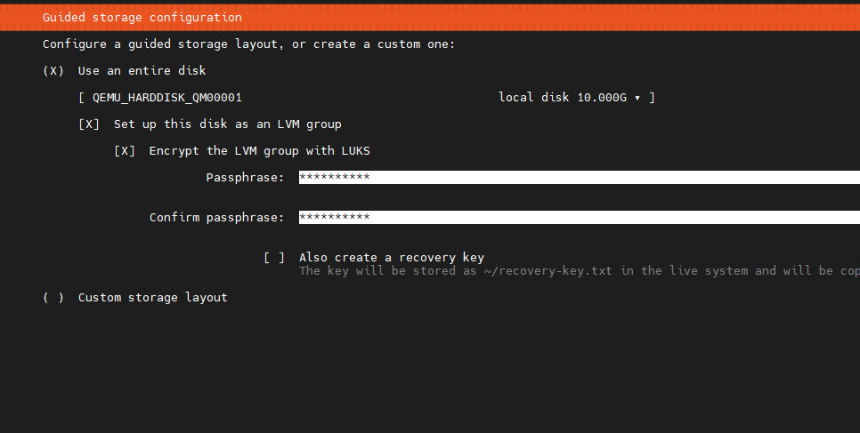 I used Ubuntu Server 22.04 because 24.04 crashed when encrypting a LUKS partition step.