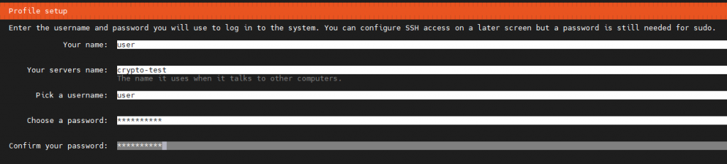 The installation process will stop and prompt you to enter a password to decrypt the disk, and the installation process will continue. After that, we reconnect via SSH and are back on the server.