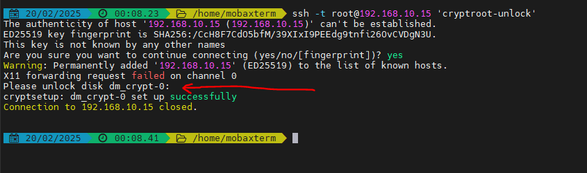 ssh -t root@192.168.10.15 'cryptroot-unlock'