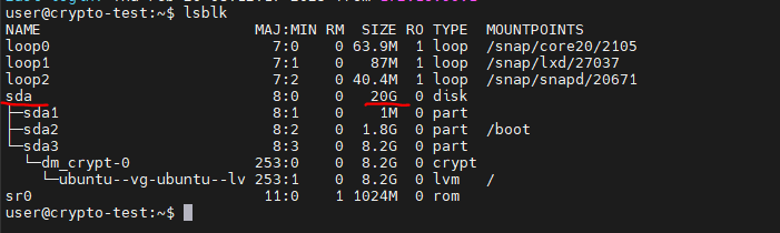 6. We check the disk capacity. In the example, the sda disk became 20G