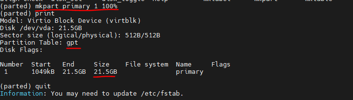 sudo parted /dev/vda